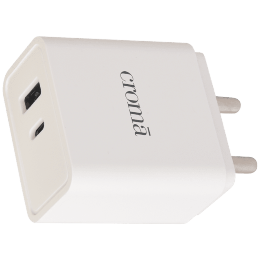 Croma 20W Type A & Type C 2-Port Fast Charger (Type C Cable, Apple Compatible, White)